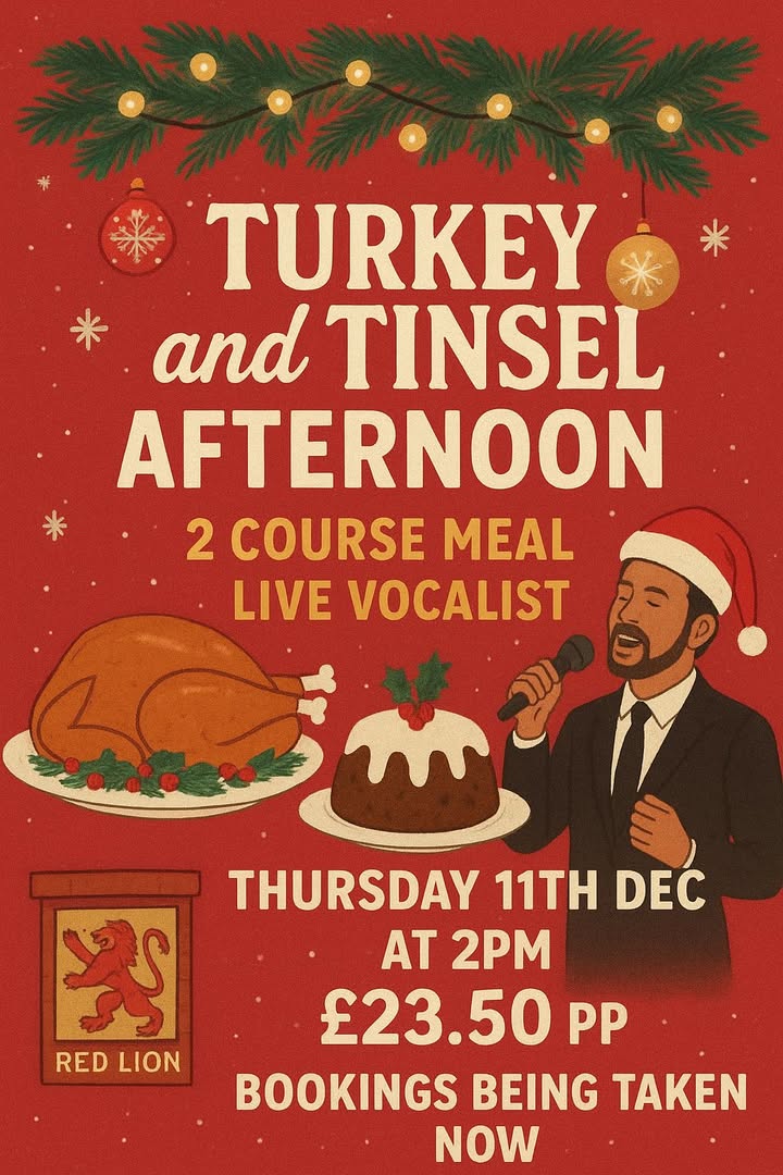 Booking now being taken for The Red Lion’s Turkey and Tinsel Afternoon. Booking can be made on open Table or at the Pub. The Team look forward to seeing you